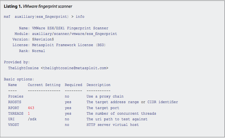 msf > use auxiliary/scanner/vmware/esx_fingerprint
