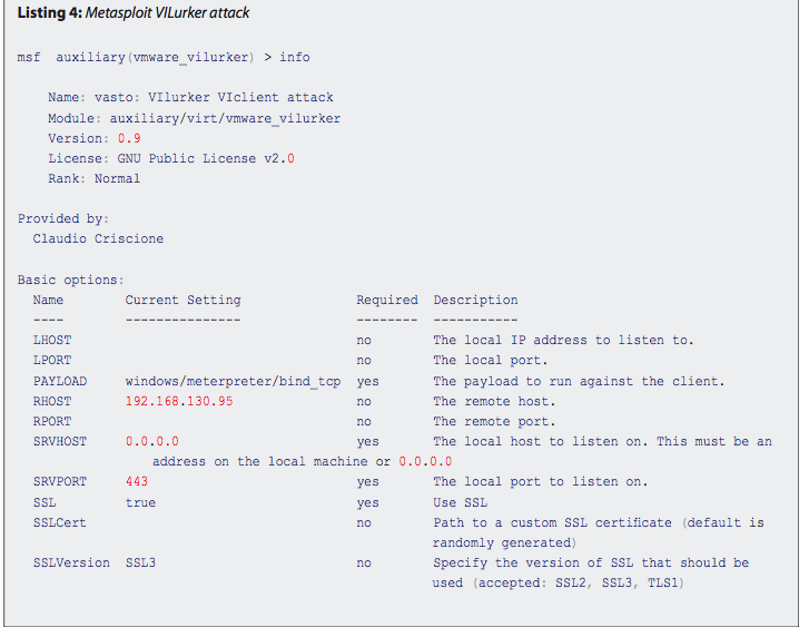 Module này sẽ thực hiện tấn công đối với môi trường cơ sở hạ tầng ảo hóa hoặc vSphere Client. VI Client sẽ bị đánh lừa để tải về bản cập nhật giả mạo (fake update), thực thi dưới thông tin xác thực của người dùng. Có Metasploit payload ở đây không ? Có, tôi sẽ sử dụng loại Payload phổ biến nhất của Metasploit để chiếm quyền kiểm soát máy chủ Windows, Meterpreter Payload. Có một vài cấu hình tôi cần thiết lập trước khi tiến hành khai thác