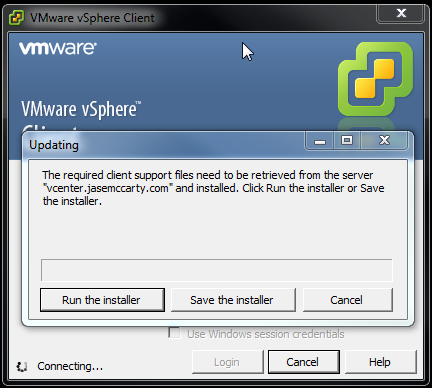 Tiếp theo, Administrator sẽ bấm nút "Yes" để cập nhật vSphere Client và tôi sẽ "thấy" như sau trên console của mình :